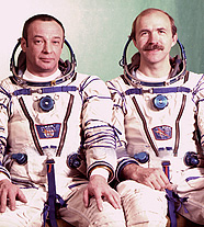 Экипаж космического корабля «Союз ТМ-16»: командир экипажа Г. М. Манаков (слева) и бортинженер А.Ф. Полещук.