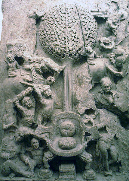Аниоконическое изображение нападения Мары на Будду. Рельеф 2 века нашей эры из Амаравати, Индия. Музей Гиме, Париж.