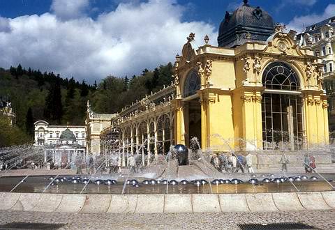 Марианске-Лазне. Поющий фонтан перед колоннадой.