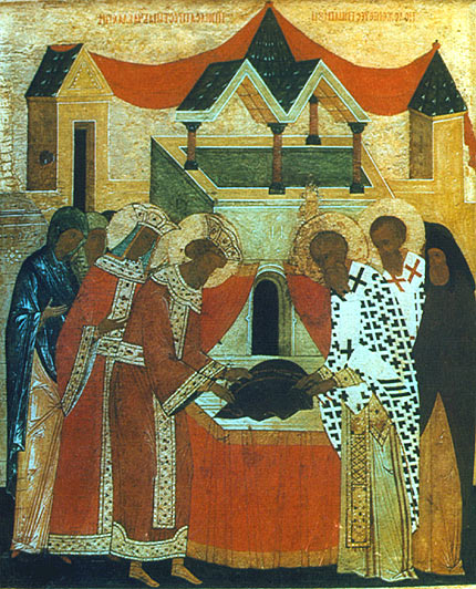 Дионисий. Положение ризы и пояса Богородицы. Икона из Ризоположенской церкви села Бородавы Вологодской области. 1485 год.
