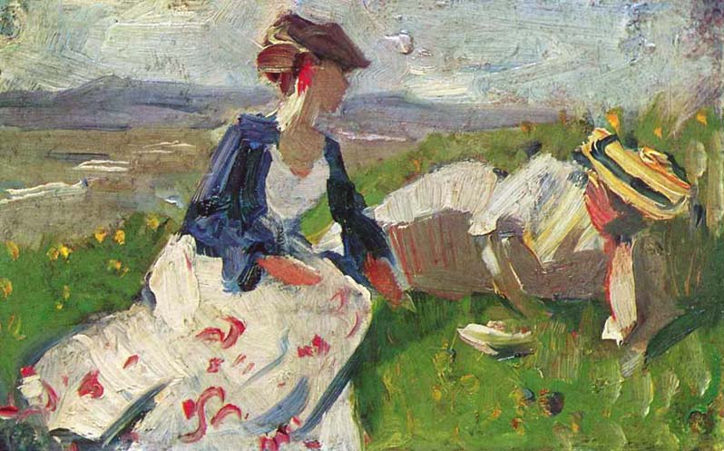 Франц Марк. Две женщины на горе. 1906 год. Холст, бумага. Галерея Штангль, Мюнхен.