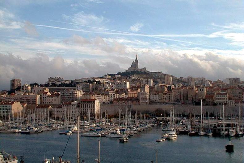 Марсель. Панорама города с видом на порт и Нотр-Дам-де-ла-Гард.