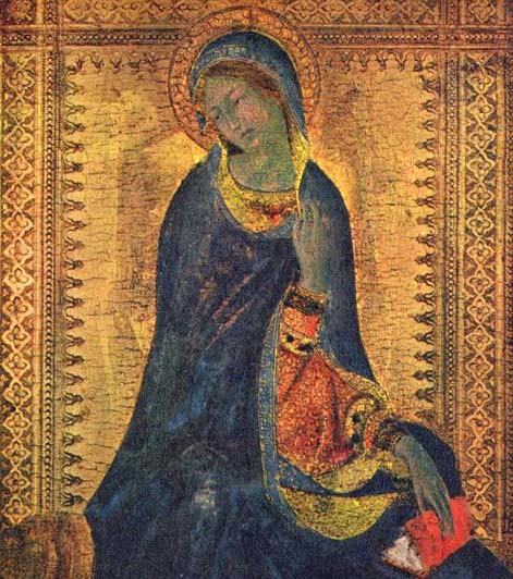 Симоне Мартини. Мадонна из сцены «Благовещение». Около 1330 года. Темпера, дерево. Эрмитаж, Петербург.
