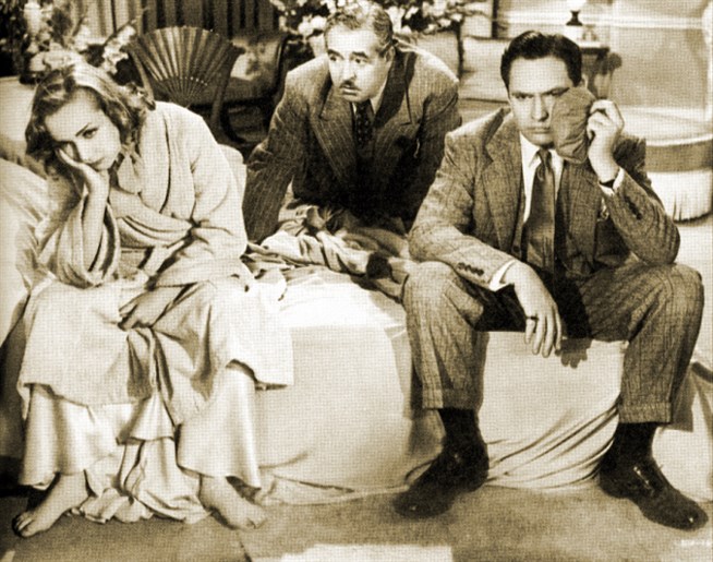 Керолл Ломбард, Уолтер Конноли и Фредрик Марч в фильме «Ничего святого». 1937 год.