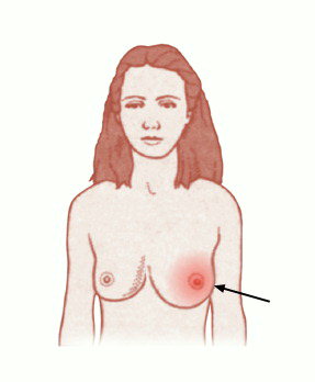 Покраснение кожи и увеличение молочной железы в результате отека.