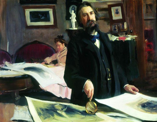 Б.М. Кустодиев. Портрет В.В. Матэ. 1902 год. Холст, масло. Русский музей, Петербург. За столом Ида Романовна Матэ, жена художника.