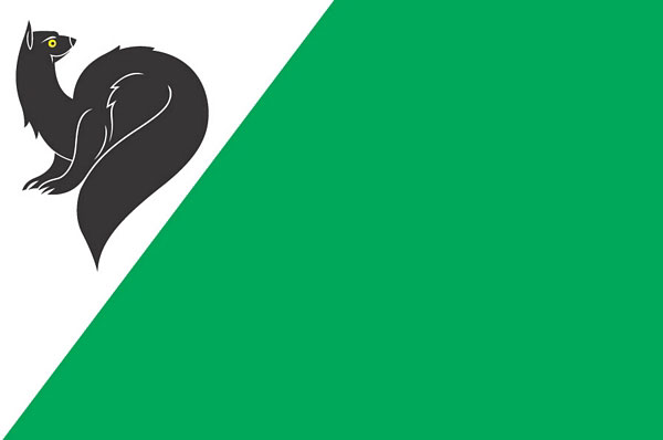 Флаг Мегиона был принят 19 июля 2001 года. В белом углу — черный соболь.