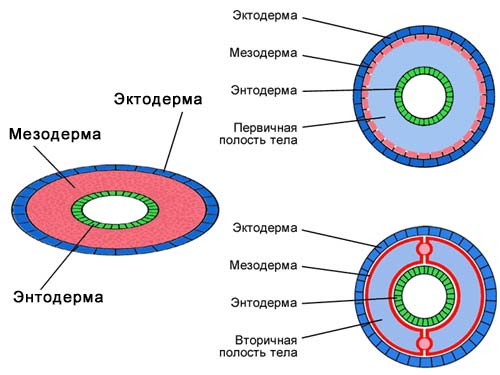 Усложнение полости тела прослеживается у различных червей. У плоских червей она заполнена паренхимой. У круглых - образуется первичная, а у кольчатых - вторичная полость тела.