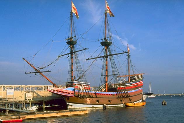 Реконструкция корабля «Мейфлауэр» в Плимуте. Штат Массачусетс.