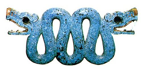 Нагрудное украшение мексиканских жрецов — двуглавая змея, украшенная миниатюрной мозаикой из бирюзы. Примерно 13-14 вв. н. э.