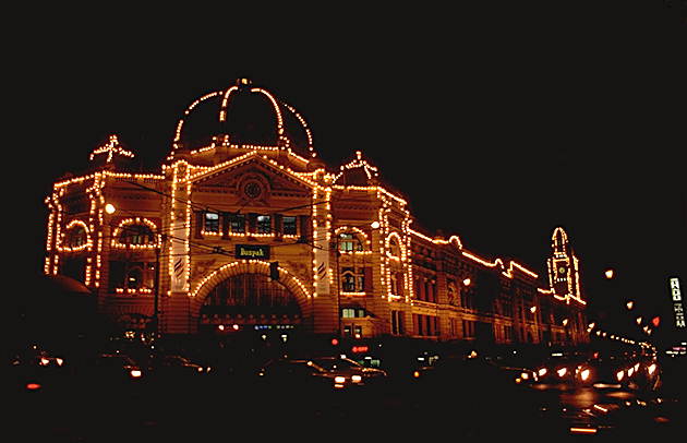 Мельбурнский вокзал ночью.