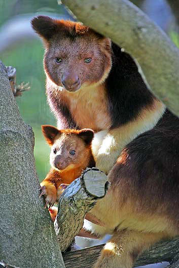 Древесный кенгуру с только что вышедшим из сумки детенышем в Мельбурнском зоопарке.