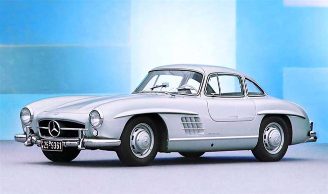 Спортивное купе Mercedes 300SL с дверями типа «крыло чайки» выпускался в 1954-1957 гг. и оснащался рядным шестицилиндровым двигателем с системой непосредственного впрыска топлива в цилиндры рабочим объемом 3, 0 л мощностью 215 л.с.