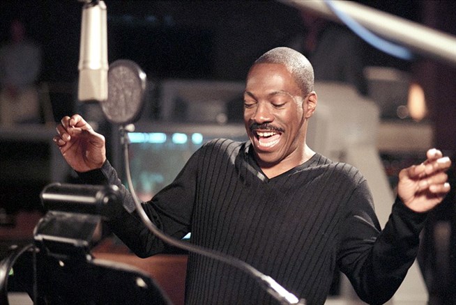 Эдди Мерфи в работе над озвучанием анимационного фильма «Шрек». 2001 год.