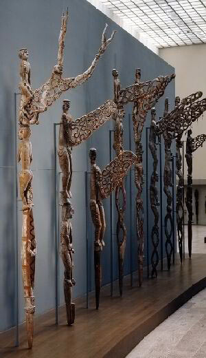 Метрополитен-музей. Мемориальные столбы асматов. Новая Гвинея, сер. 20 в. Фрагмент экспозиции, посвященной искусству народов Африки, Океании и Америки.