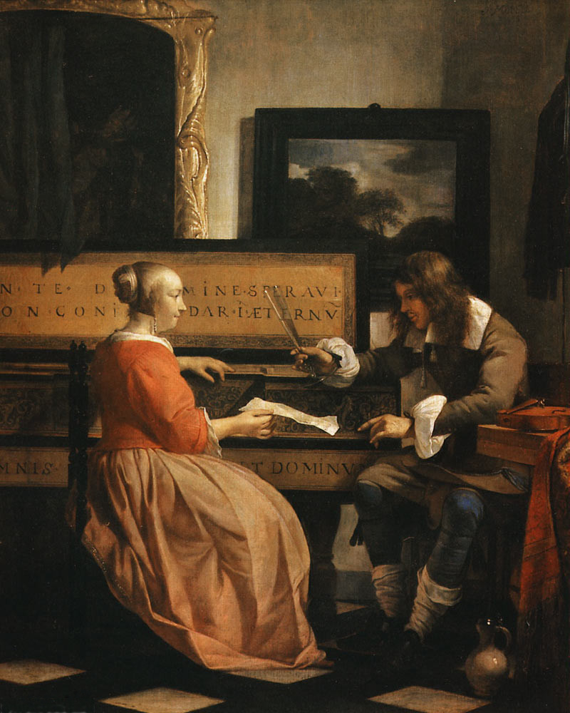 Г. Метсю. Урок музыки. Около 1658 года. Холст, масло. Национальная галерея, Лондон.