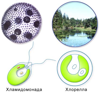 Среди одноклеточных водорослей наиболее известны хламидомонада и хлорелла, часто встречающиеся в различных пресных водоемах средней полосы России. Их используют для биологической очистки сточных вод, а также в разнообразных научных исследованиях.