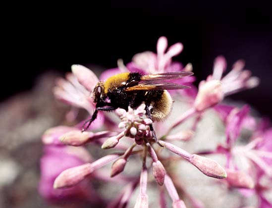 Муха, имитирующая шмеля. Окраска мухи похожа на окраску шмеля, но распознать, что это муха, можно по глазкам.