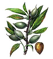 Миндаль обыкновенный. Ветвь с зелеными плодами и зрелый плод.