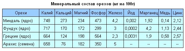 Минеральный состав орехов