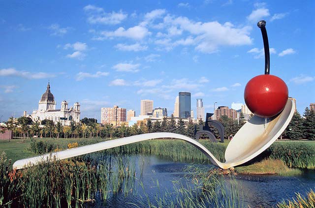 На территории Миннеаполиса расположен Уолкер арт центр (Walker art center). Здесь можно увидеть огромную ложку с вишенкой (9 x 15, 7 x 4, 1 м), созданную в 1988 Клаусом Олденбургом (Claes Oldenburg) и Кози ван Брюггеном (Coosje van Bruggen).