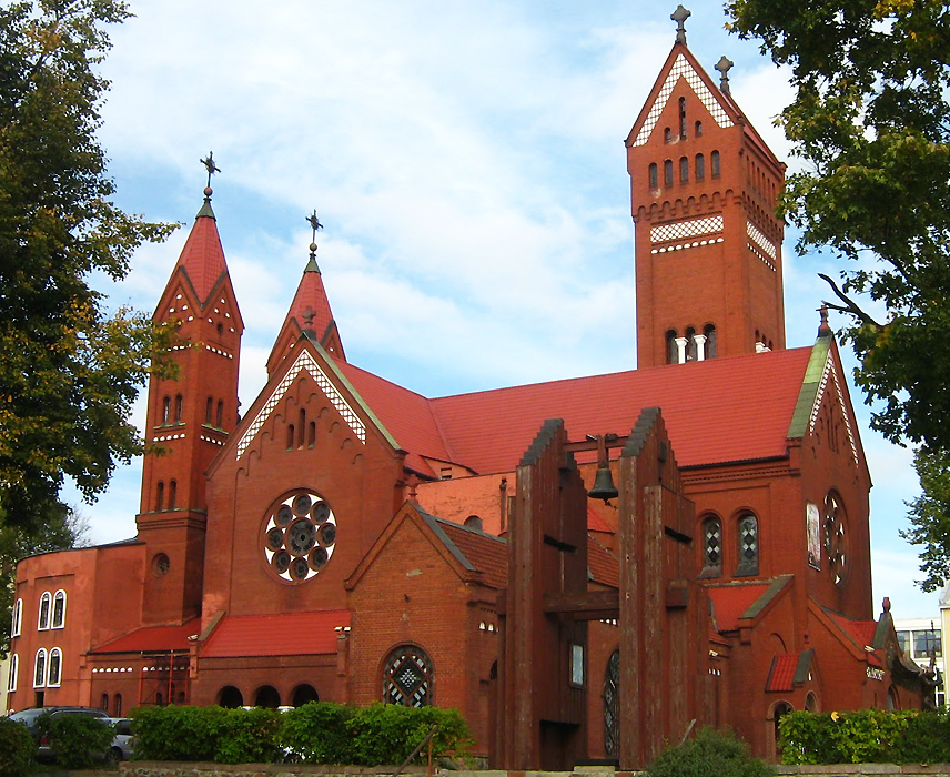 Минск. Красный костел или костел святых Симеона и Елены. Постройка 1905-1910 годов.