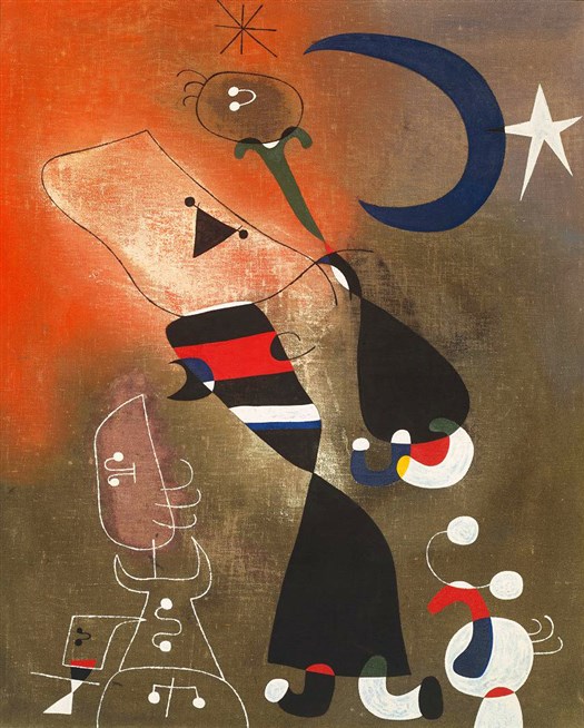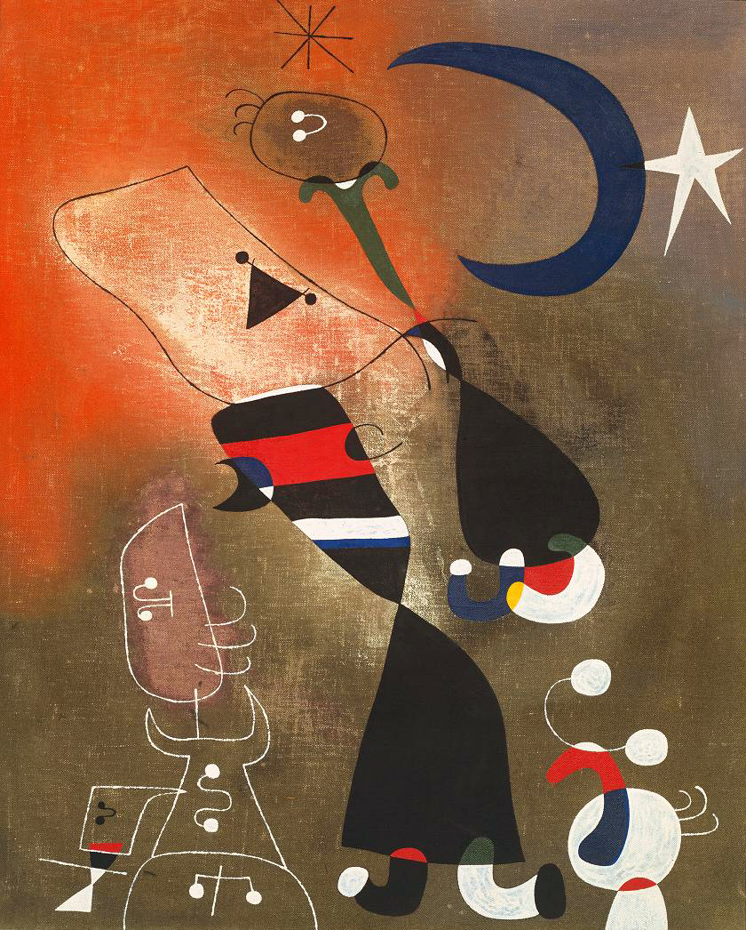 Ж. Миро. Женщины и птица в лунном свете. 1949 год. Холст, масло. Галерея Тейт, Лондон. Картина из цикла «Женщины и птицы».