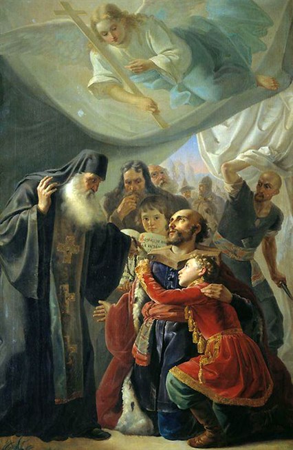 Пимен Никитич Орлов (1812-1865). Напутствие Михаила Тверского. 1847 год. Холст, масло. Тверская картинная галерея.