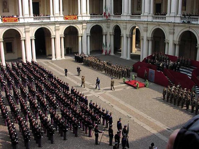 Модена. Военный парад во внутреннем дворе Палаццо Дукале.