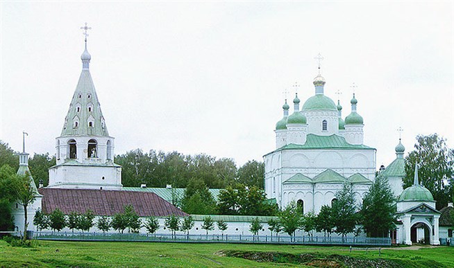 Ферапонтов Лужецкий Можайский мужской монастырь. Колокольня и собор Рождества Богородицы. 1911 год. Фотография Сергея Михайловича Прокудина-Горского (1863-1944).