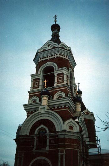 Действующая церковь Иоакима и Анны. Построена в 1871 архитектором К. В. Гриневским. Кирпичная, в южной стене - белокаменная часть храма конца 14 в. Приделы Никольский и Ахтырский.
