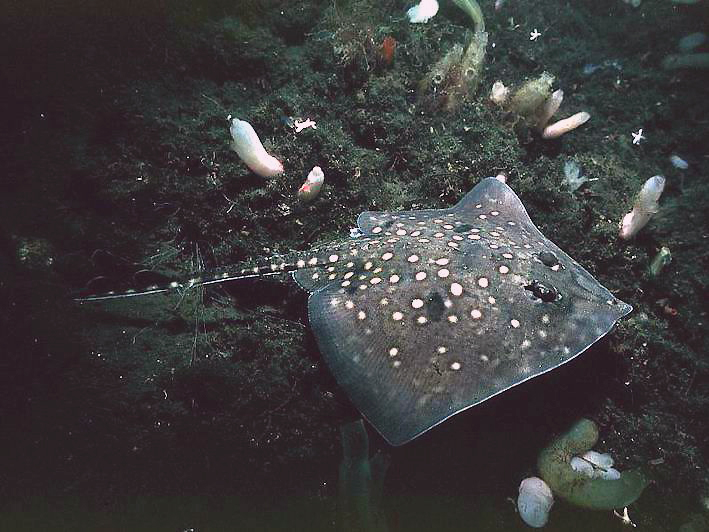 Морская лисица (шиповатый скат, колючий скат; Raja clavata) из рода собственно ромбовых скатов.