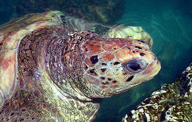 Крупная (длина панциря до 1 м) морская черепаха логгерхед (Caretta caretta), она же - ложная каретта (в отличие от биссы, которую в данном случае называют настоящей кареттой), отличается большой головой, покрытой крупными щитками. Отсюда еще одно ее название - головастая.
