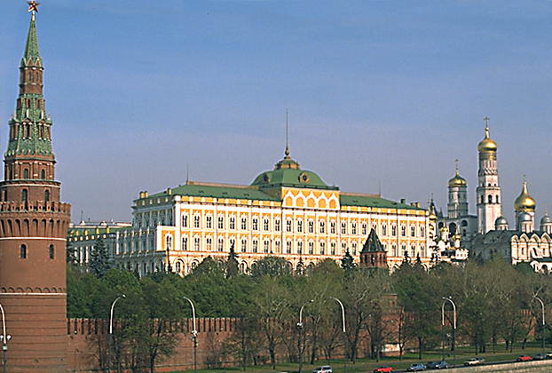 Большой Кремлевский дворец. До 1917 — московская резиденция российских императоров, место парадных приемов. Построен в 1839-49 К. А. Тоном при участи других архитекторов. В плане имеет вид каре с внутренним прямоугольным двором. Фасады выполнены в «русско-византийском» стиле, интерьеры — эклектика. В первом этаже 2-этажного здания (второй этаж 2-ярусный) находятся бывшие личные покои российских императоров — анфилада парадных комнат, отделанных мрамором, малахитом, украшенных лепниной, росписью, скульптурой, изделиями из бронзы и фарфора, обставленных резной позолоченной мебелью 19 в. На втором этаже — парадные залы: Георгиевский, Владимирский и Екатерининский и другие помещения. В 1999 во дворце закончена реставрация, убравшая позднейшие советские наслоения.
