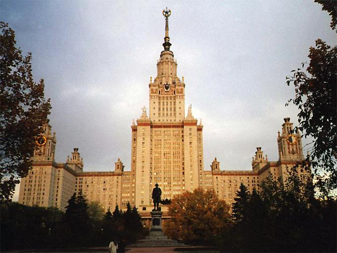 Москва. Здание МГУ на Воробьевых горах (1949-53), памятник М.В. Ломоносову.