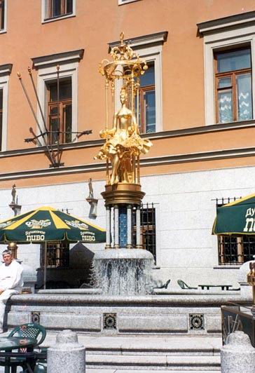 Москва. Фонтан «Турандот» перед зданием театра им. Е. Вахтангова на Арбате. Открыт в 1997 в честь 75-летия постановки пьесы «Принцесса Турандот». Скульптор А. Бурганов.
