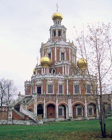 Москва. Церковь Покрова в Филях — великолепный памятник «нарышкинского барокко». Построена в 1690-93 на средства владельца села боярина Л.К. Нарышкина, брата царицы Натальи Кирилловны.