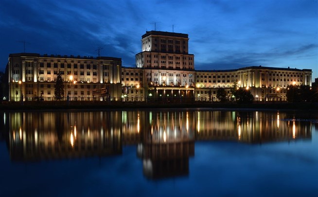 Ночное здание Московского государственного технического университета им. Н.Э. Баумана. 2013 год. Фото: Sergey Korovkin 84, wikimedia.org