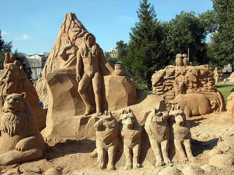 С 1 по 30 сентября 2005 г. в Московском зоопарке проходил Международный фестиваль песчаной скульптуры. Песчаная композиция «Маугли».