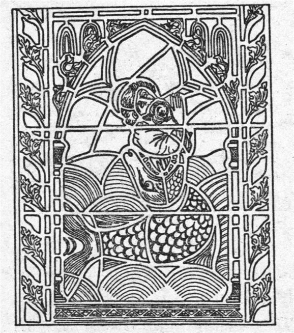 Человек, проглоченный рыбой. Цветное стекло. Иллюстрация истории Ионы, однако все подобные изображения человеческих существ, проглатываемых рыбой, змеей или драконом, берут свое начало из традиции инициации, согласно которой такой человек получает видение двух миров: спиритуального и материального (из церкви Сент-Этьенн в Мюльхаузе, Франция)