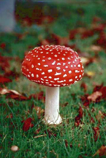 Мухомор красный (Amanita). Цвет шляпки различной густоты.