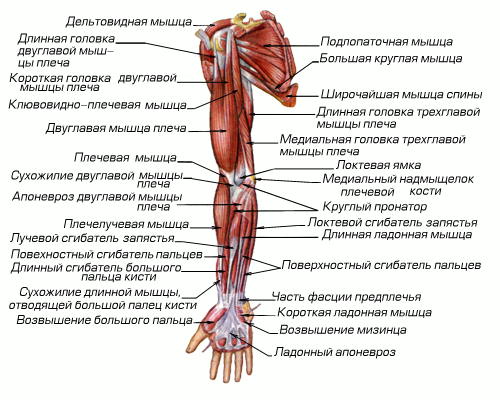 Мышцы верхней конечности. Вид спереди.