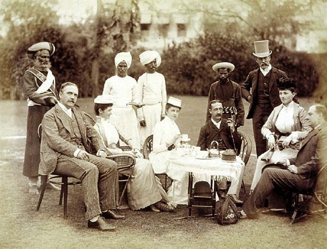 Далеко от дома англичане старались сохранить привычный ритм жизни. На фото группа англичан пьет чай. Бирма, 1870.