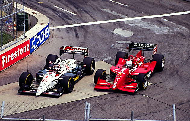 Найджел Мэнселл и Майкл Андретти в борьбе за лидерство.
