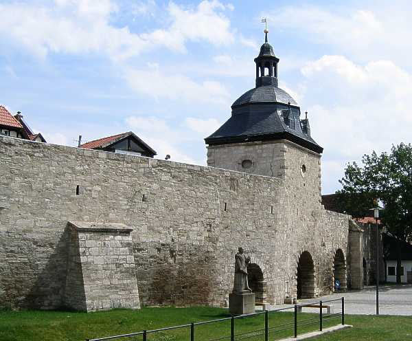 Мюльхаузен. Ворота Фрауэнтор с участком средневековой крепостной стены.
