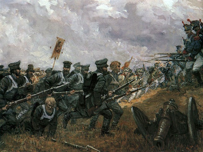 Московские ополченцы в боях на Старой Смоленской дороге. Художник В. Келерман. 1957.