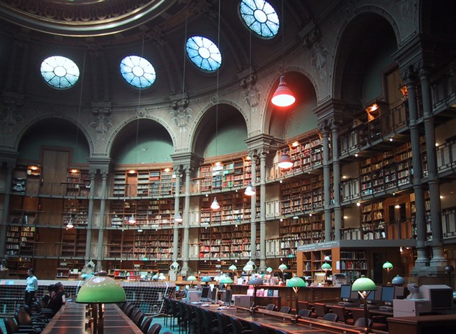 Овальный зал в старом здании Национальной библиотеки Франции на улице Ришелье в Париже.