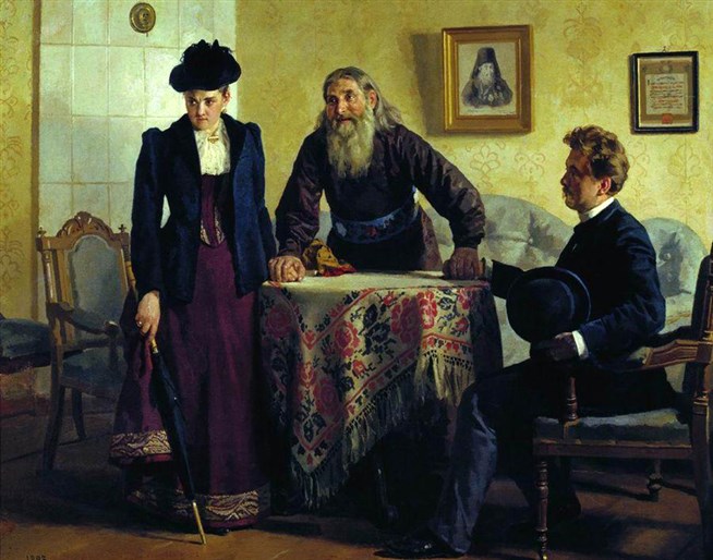 Н.В. Неврев. Увещевание. 1893 год. Холст, масло. Государственный музей искусств Казахстана.