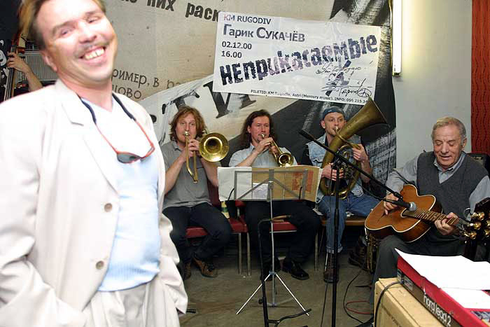 Группа «Неприкасаемые». На переднем плане — Гарик Сукачев, справа — кинорежиссер Петр Тодоровский.