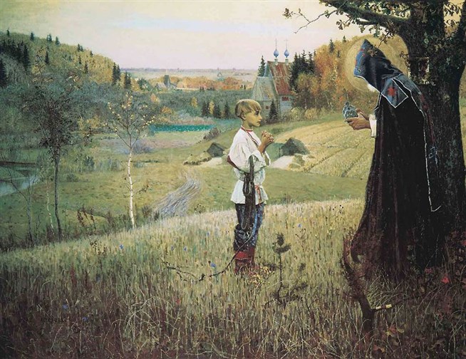 М.В. Нестеров. Видение отроку Варфоломею. Холст, масло. 1889 год. Третьяковская галерея, Москва.